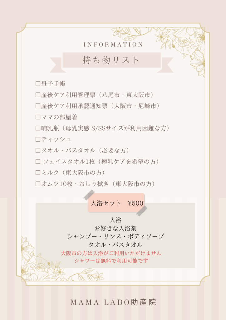 ・母子手帳と産後ケア利用承認通知書をご持参ください